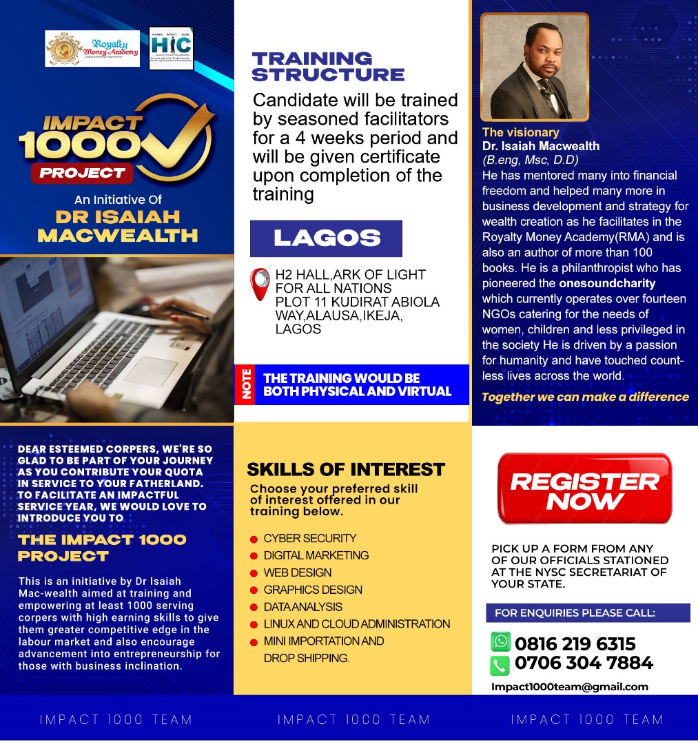 As part of our commitment to social responsibility, Royalty Academy collaborates with Higher Impact Club and other charity interests to offer FREE training for youths and other selected segments of society, in dedication to making a positive impact in our community.